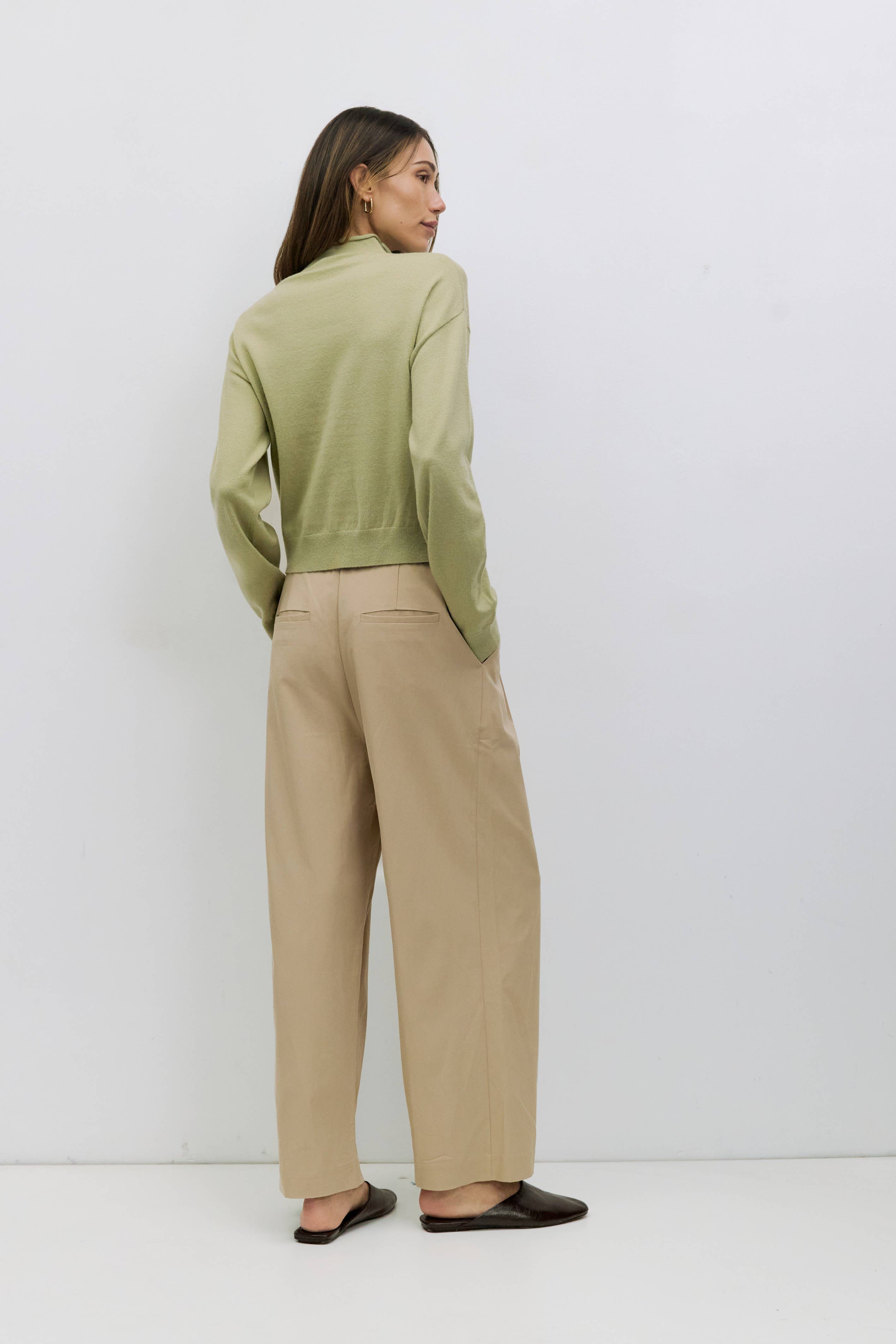 the kerry high-neck cardigan is a relaxed, high-neck silhouette crafted from midweight sweater knit for a cozy, structured feel. featuring a turtleneck, drop shoulders, long sleeves, and full button front, it offers timeless layering with modern ease.