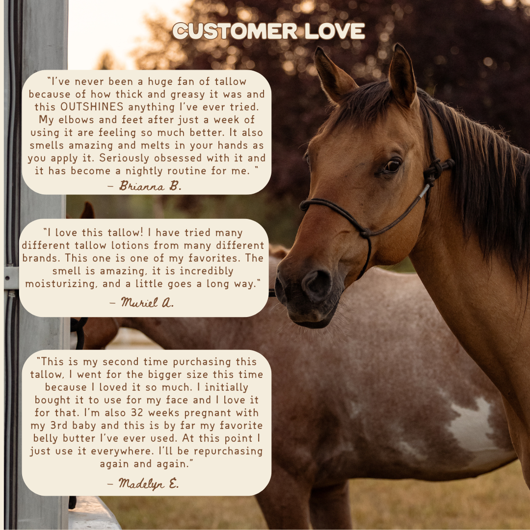 - Grass-fed & finished tallow mimics the skin’s natural oils for better absorption