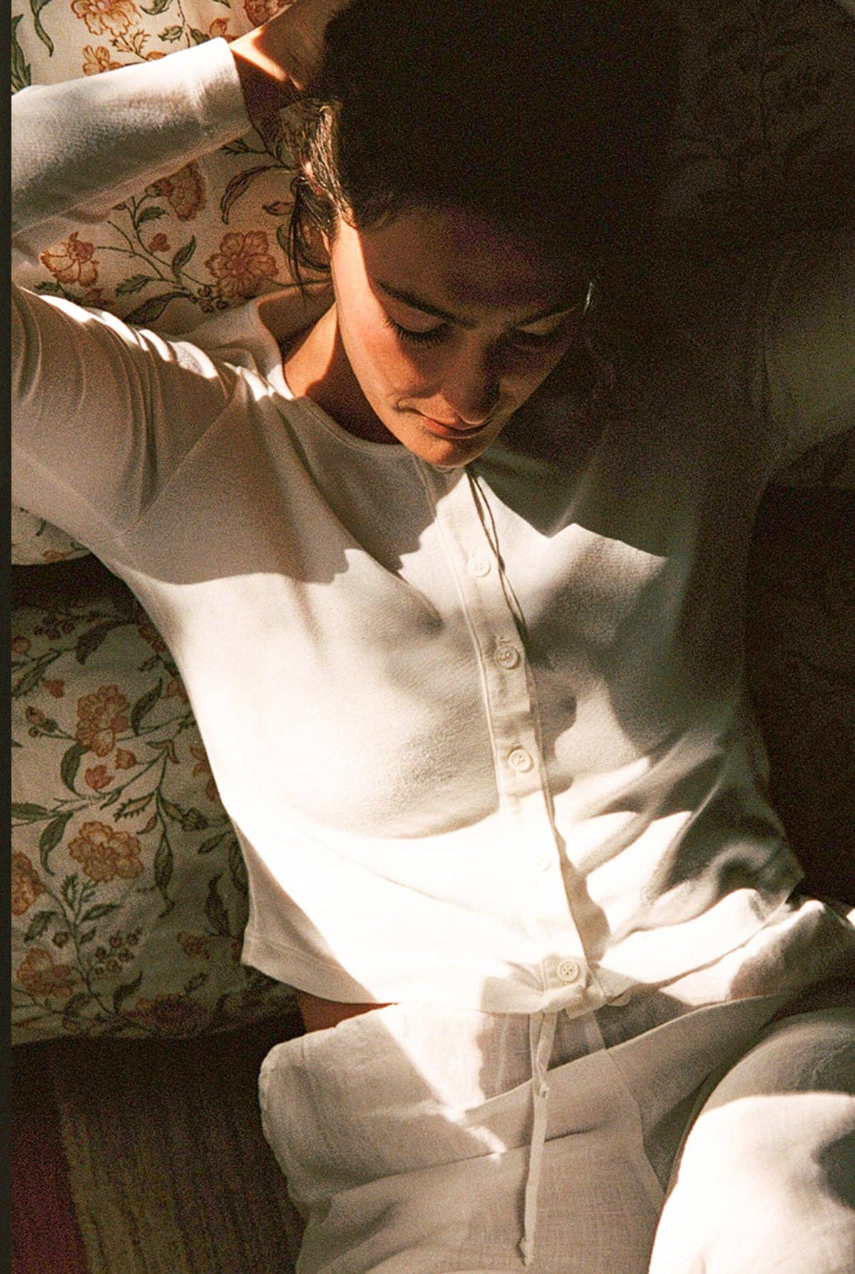 A modern take on a ‘90s classic, this button-front cardigan from LA Relaxed is crafted in 100% GOTS-certified organic cotton baby rib for softness and lasting shape. Designed with a slightly cropped fit, delicate neck binding, and pearlescent buttons, it’s the effortless layer you’ll reach for again and again. Garment-washed for extra comfort and pre-shrunk for the perfect fit, this cardi pairs easily with denim or layered under jackets for year-round wear.
