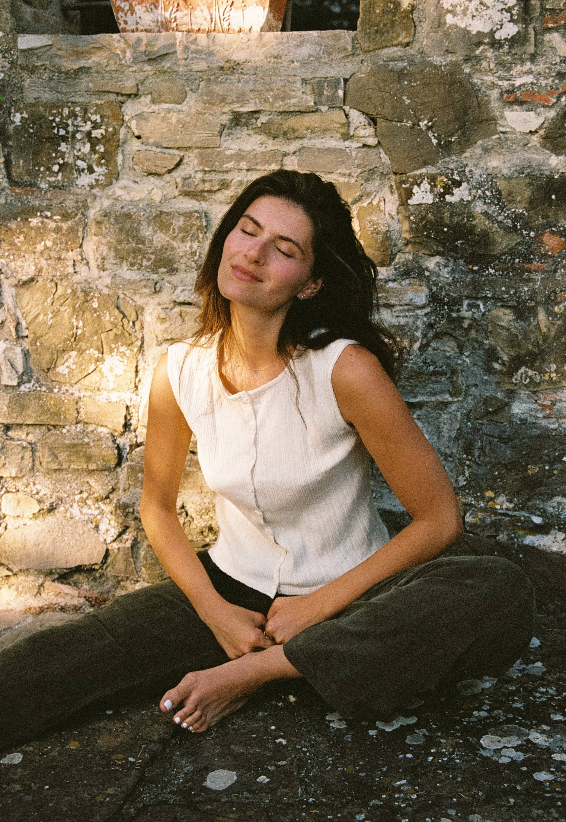 a softly structured knit with timeless charm. the Luna Pointelle Shell is crafted from textured organic cotton rib and finished with delicately swirled buttons. lightweight yet polished, it’s the perfect layer for easy elegance — whether worn solo or under your favorite blazer.