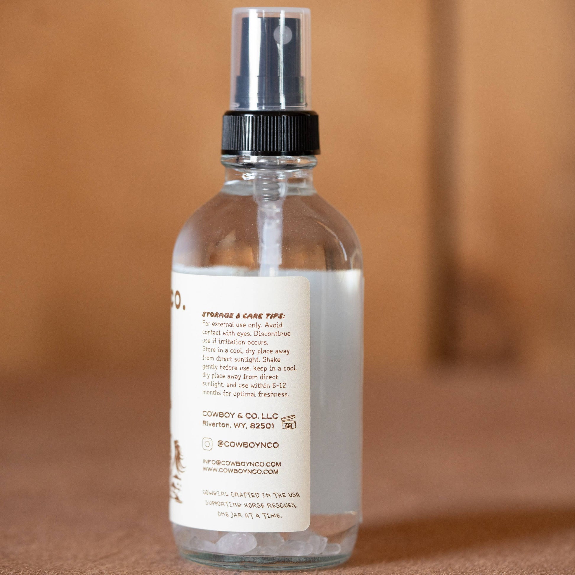 Handcrafted in Wyoming by Cowboy & Co., this 100% organic rose water toner is infused with rose quartz crystals for a soothing, skin-balancing ritual. Gentle enough for even the most sensitive skin, this naturally aromatic mist hydrates, restores your skin’s natural pH, and calms without synthetic fragrance or irritation.