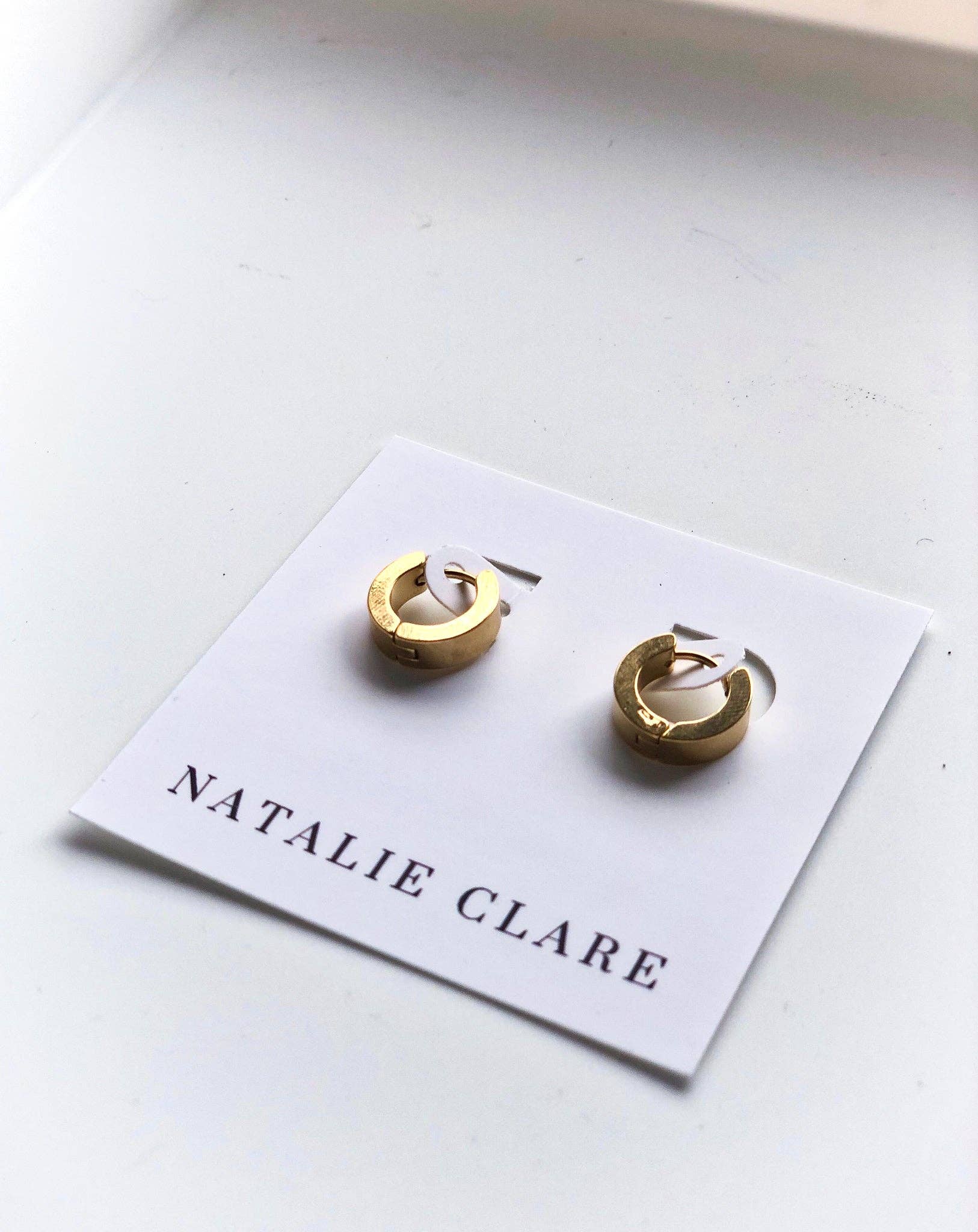 a minimalist staple you’ll reach for every day. the small gold huggie hoops are crafted from hypoallergenic stainless steel and finished in 14k gold plating for a lasting shine. lightweight, tarnish-resistant, and effortlessly chic — they pair beautifully with everything from denim to evening wear.