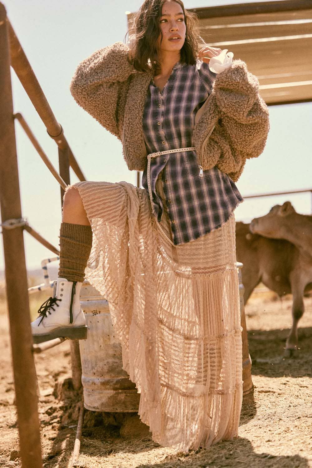 Easy to dress up or down, the Paloma Skirt pairs beautifully with knits, boots, or your favorite western jacket — a true Bonfire collection standout.