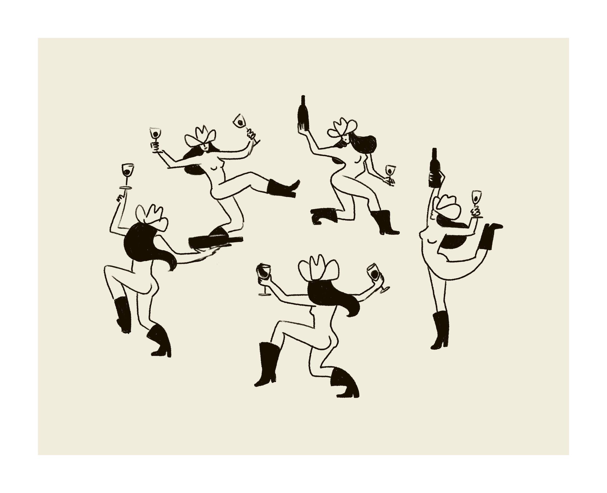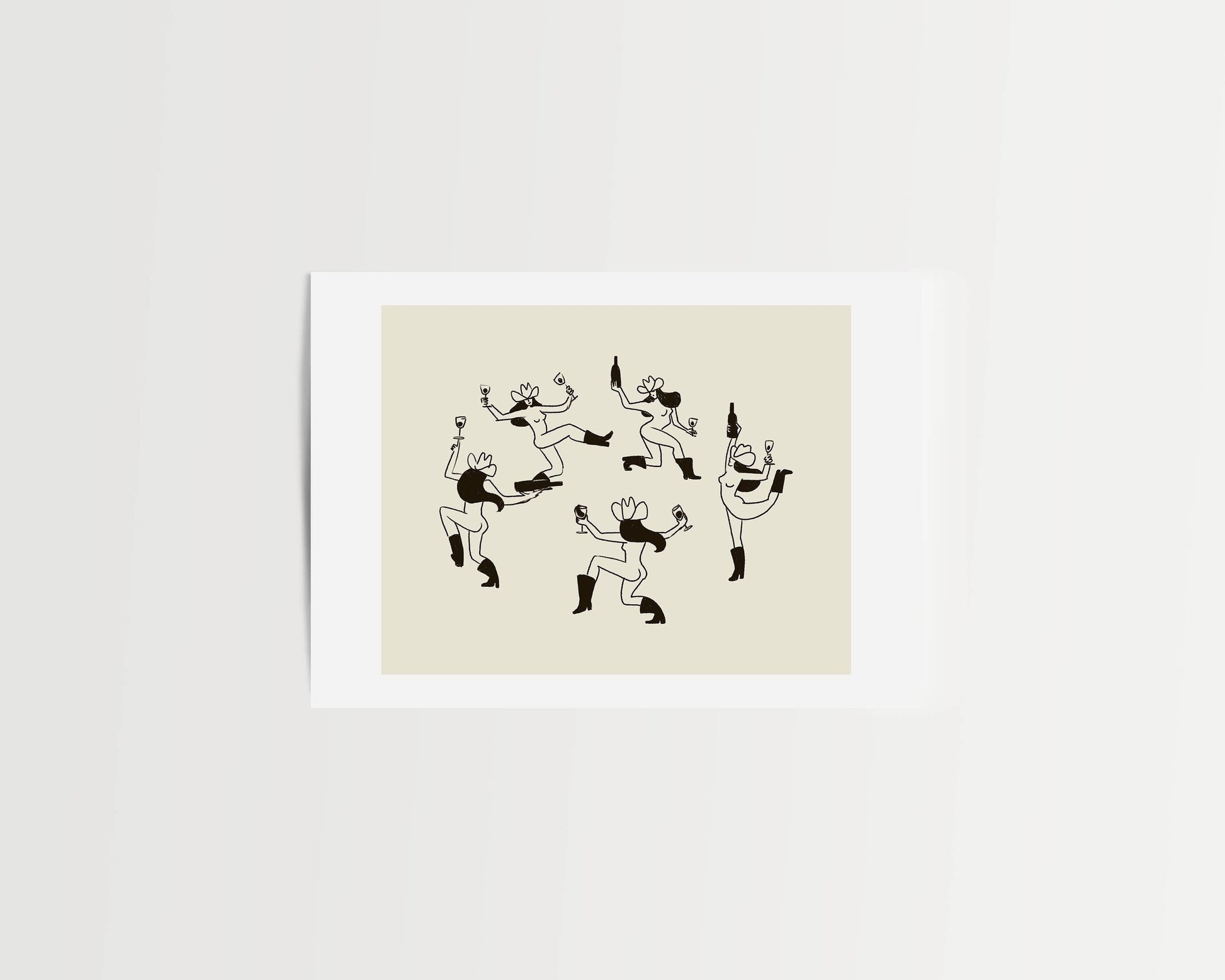 Inspired by Matisse’s iconic The Dance, this art print reimagines the scene with a circle of cowgirls—joyful, free-spirited, and full of western charm. The loose, hand-drawn style and vintage vibe make it a striking piece for eclectic walls, bar corners, or modern western décor.